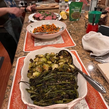 What I didn’t account for is that the party expanded to about 16 people! It was a beautiful evening. In some menu planning, it felt right to keep everything else kind of simple. The beef tenderloin ended up being done in minutes after browning it in the roasting pan and I forgot about the vegetables in the oven. I love when an accident turns into a happy discovery. The brussels were melt-in-your-mouth and the perfect companion to the meat and the gnocchi. If you’re attempting the gnocchi, be aware that these take more time than you think. Serve everything up on platters and allow your guests to make their plates for a cozy family style meal.