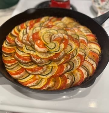 Needless to say, French dinner night or not, this one was a hit and totally worth the work. I will definitely make this again. No rats assisted in the process. If you're looking for some entertainment, do check out Ratatouille the TikTok musical from 2020. You won't be sorry about that either.